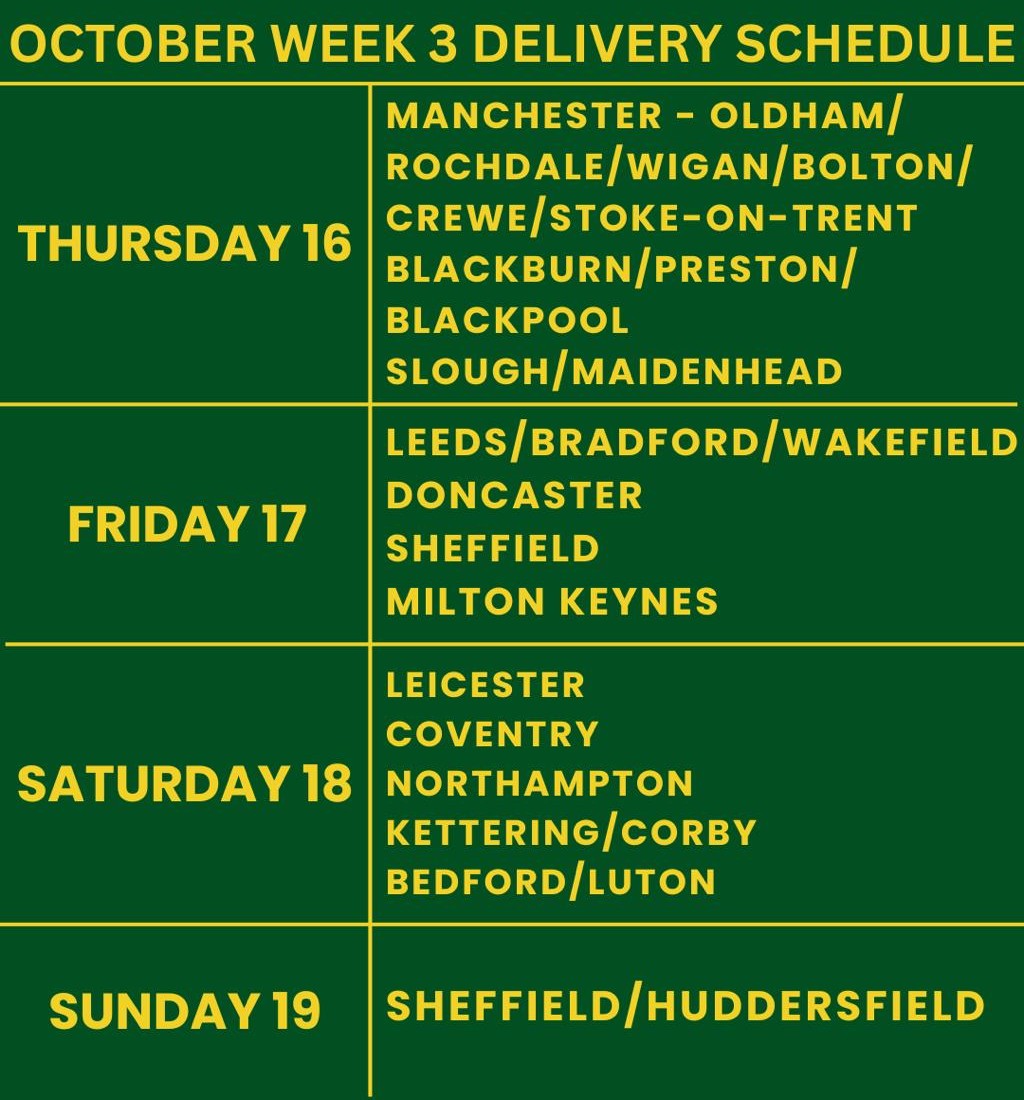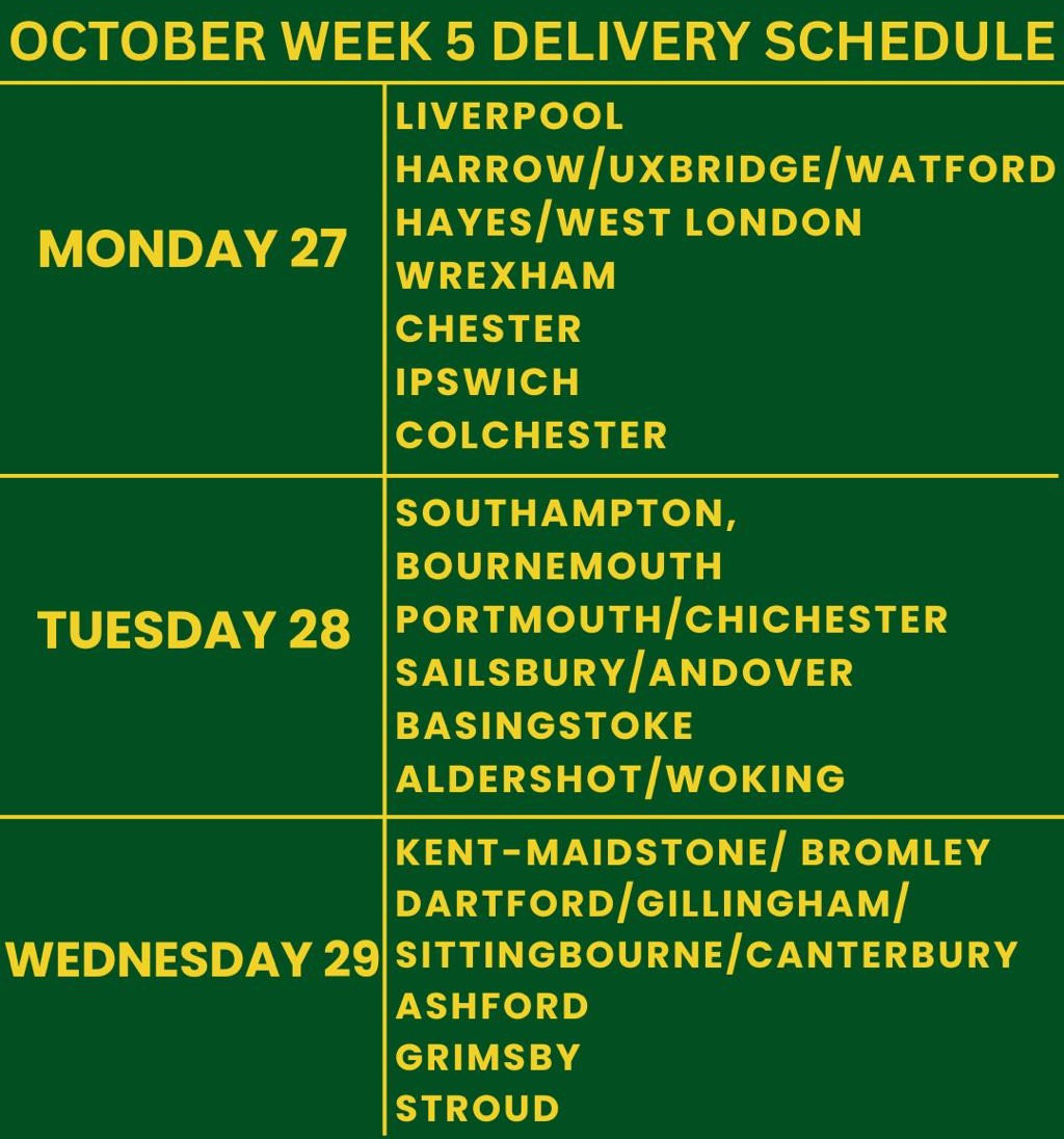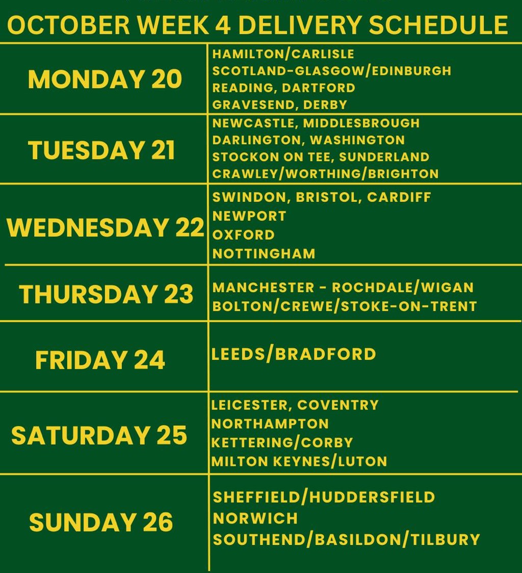 **Please Note, Orders for the 24th of October must be placed by 9pm on the 23rd of October**