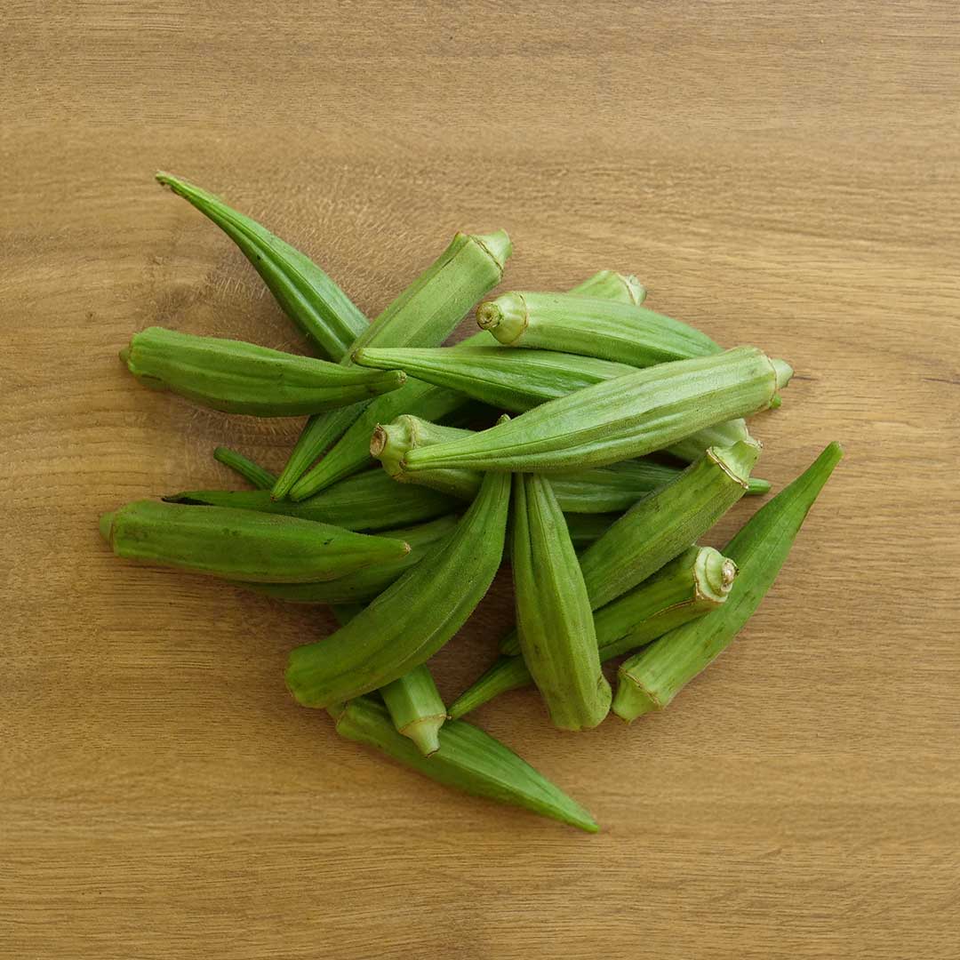 Fresh okra is a versatile vegetable with a unique texture and a subtle grassy flavor commonly used in stews and gumbos.